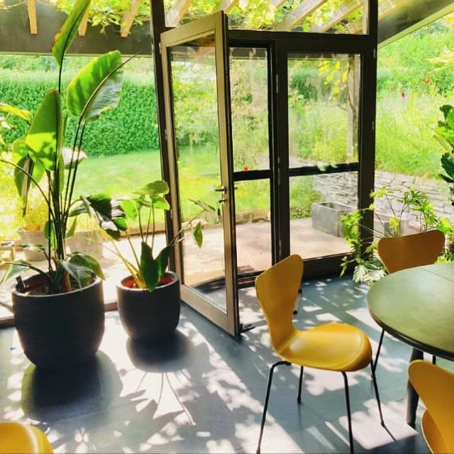 Aan de straatzijde wordt het bestaande uitzicht -met zijn veelsoortige gevelopeningen- ingepast in de nieuwe gevel. Aan de achtergevel is er voor ruimere raampartijen gekozen om het zicht op het open landschap te maximaliseren.